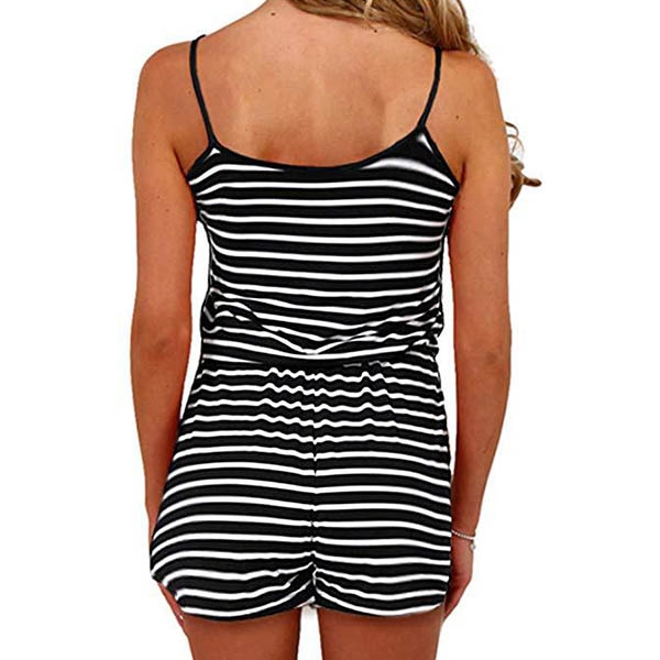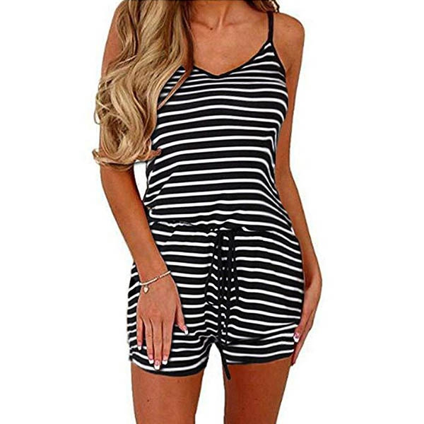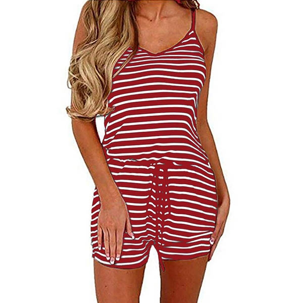 If you like stripe element,then this striped romper can arouse your attention. Sling style,with backless