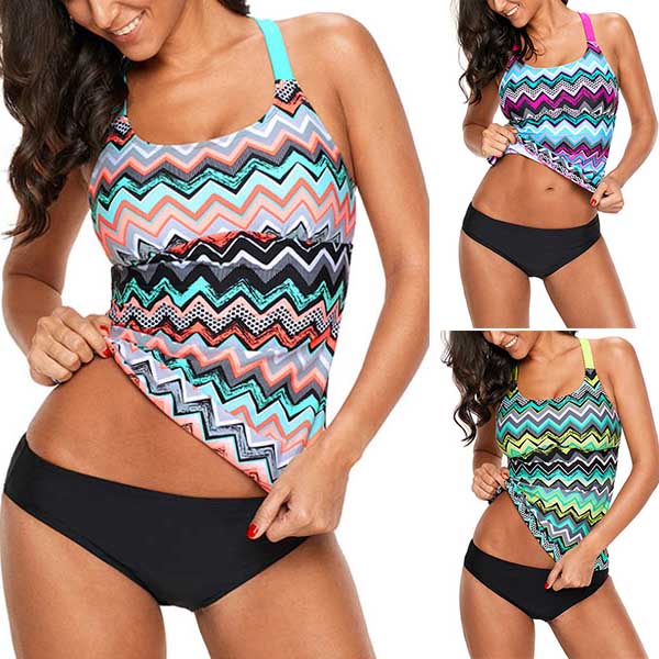 Featuring soft and breathable fabric, this swimming top can offer you a long-lasting comfort. The wavy striped element design makes it look more attractive. A good choice for your beach days!