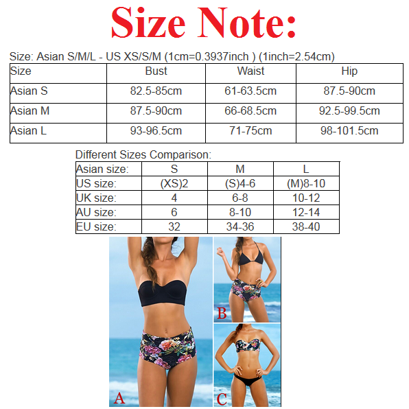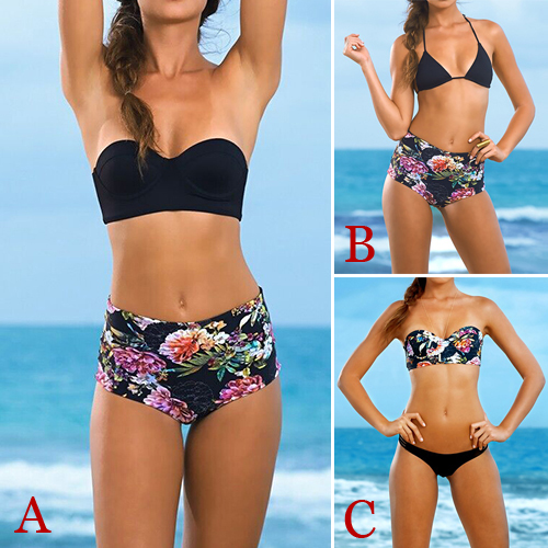 This bikini set consists a bandeau bra and a high waist floral print briefs,sexy and charming. With underwire
