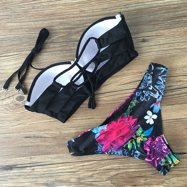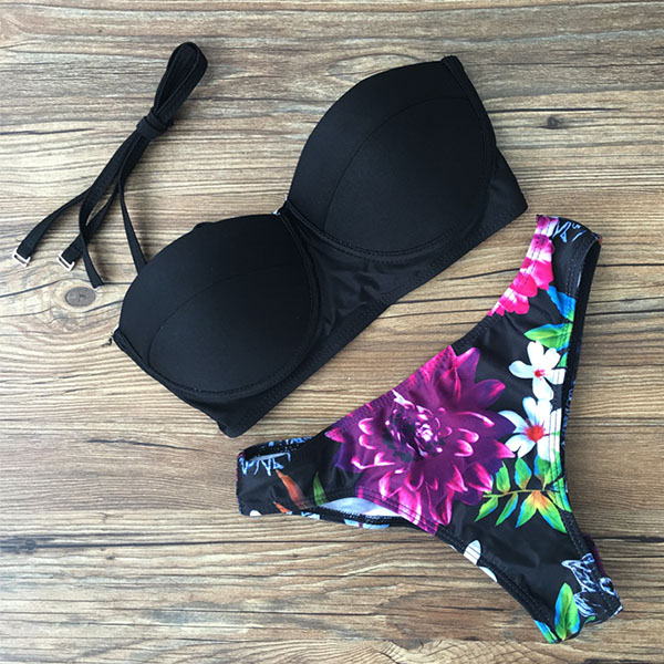 It is time for you to head to the seaside to relax yourself with this bikini set. Consists of a bandeau bra with a detachable
