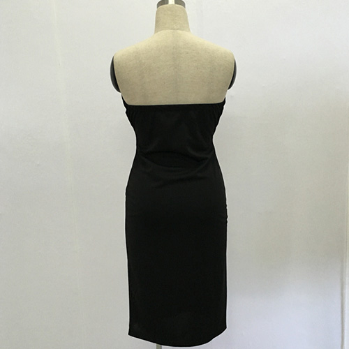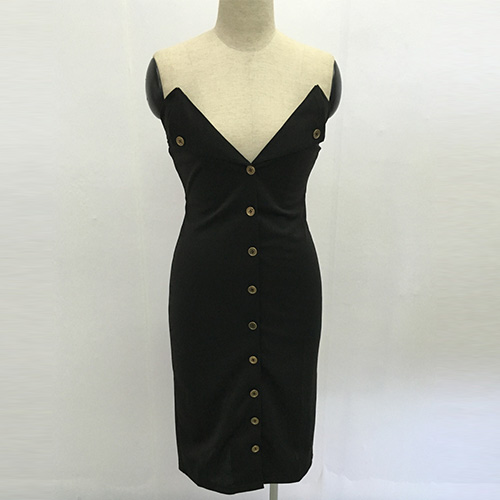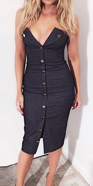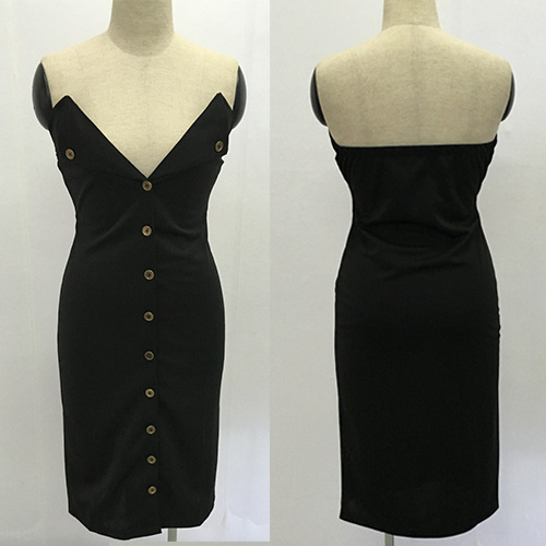 For a stylish modern essential, look no further than this bandeau dress. It features single breasted