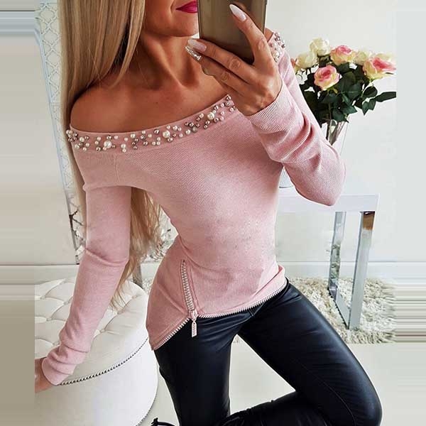the beaded boat neck and irregular zipper hem design will make this piece look sexy,distinctive and attractive.