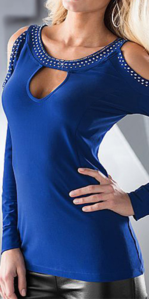 beaded design, accompanied with front hollow out and cold shoulder design, it effortlessly shows