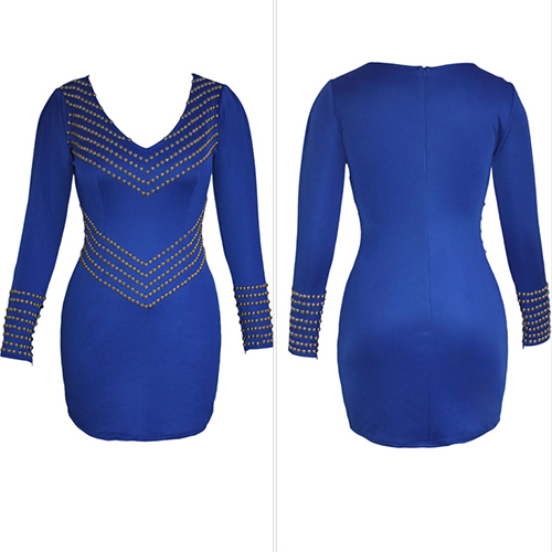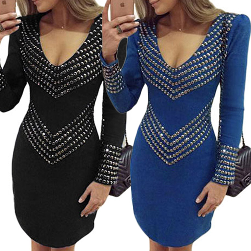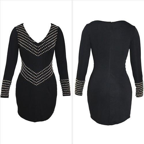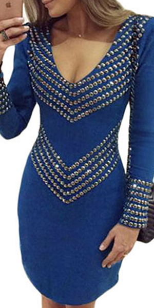with v-neck and long sleeve design, this dress shows your seductive figure. Slim-fitting silhouette