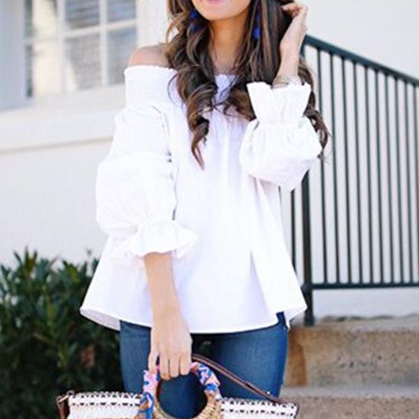 Solid color style is always popular in recent years.Boat -neck design is stylish for you to show your fair skin
