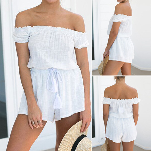 Hey,girls,you can showcase your charming summer style through this romper. Solid color style,
