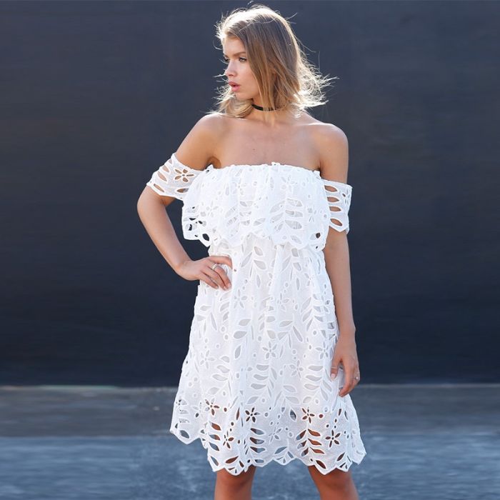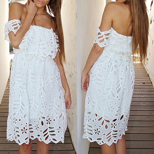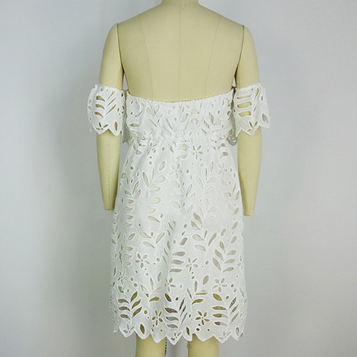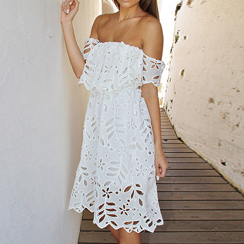 This hollow out lace dress is designed with a sexy boat neck,highlighting your charming feminine. Wear this dress and you will be an elegant scenery of this season.