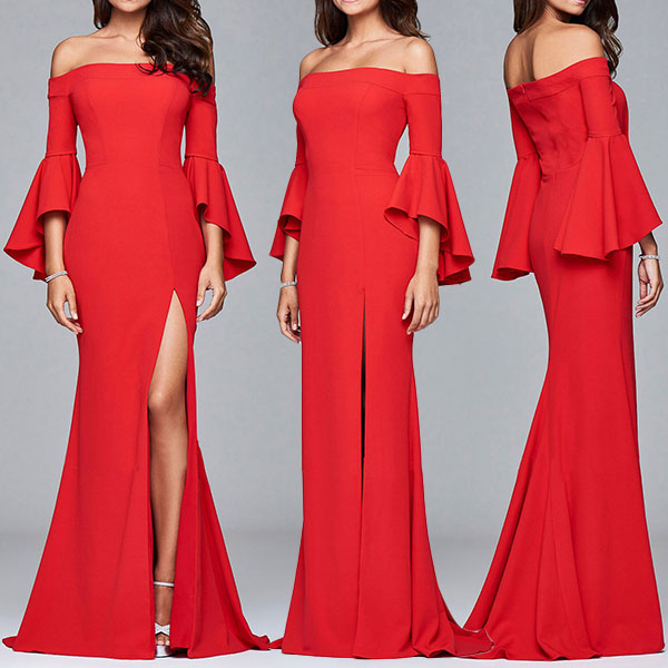 and exquisite neck.Long trumpet sleeve and solid color style which can highlight your seductive curve
