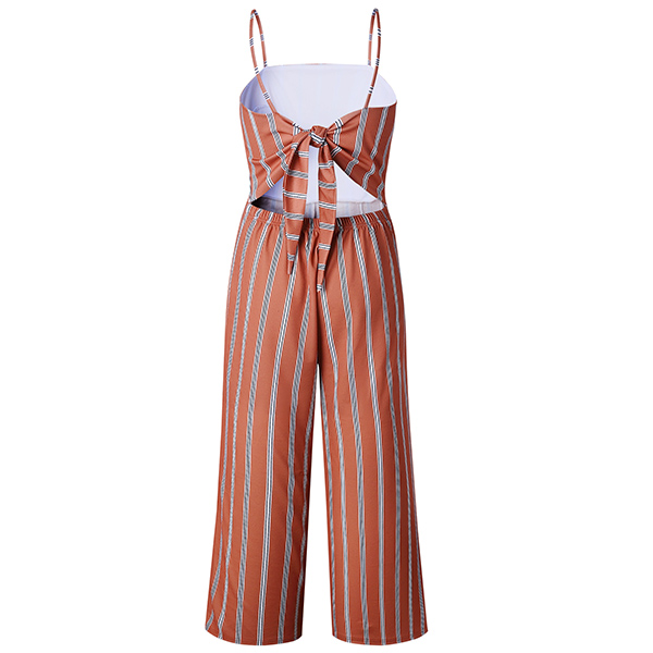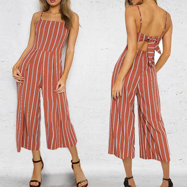 You are so charming with this beautiful jumpsuit.Boat-neck style,with stripped and contrast color ,