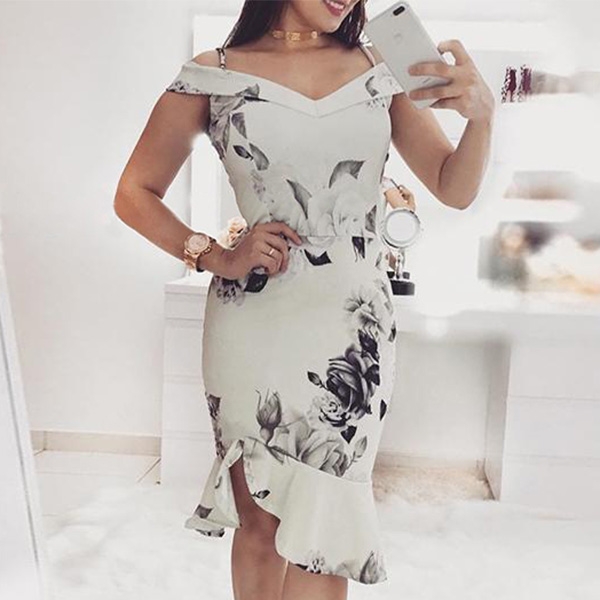 The boat neck and ruffle hem design will exude your charming feminine appeal,while the high waist and