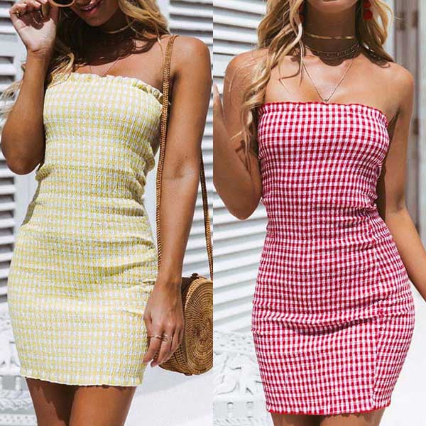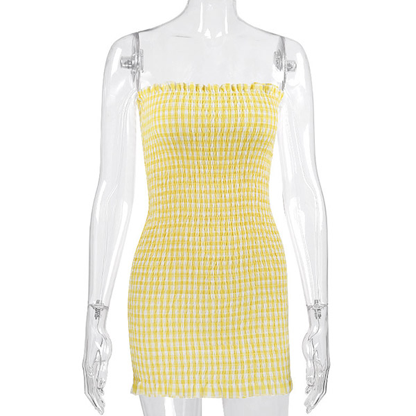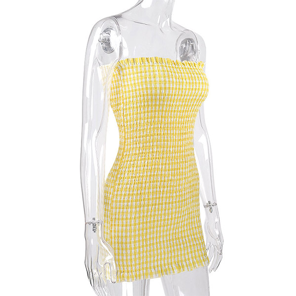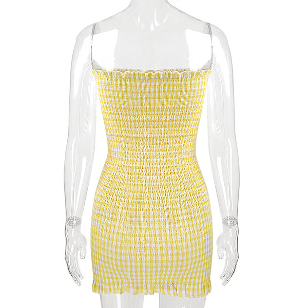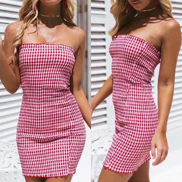 Sexy Boat-neck Slim Fit Pleated Plaid Over-hip Dress