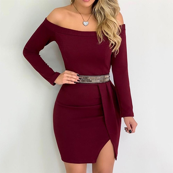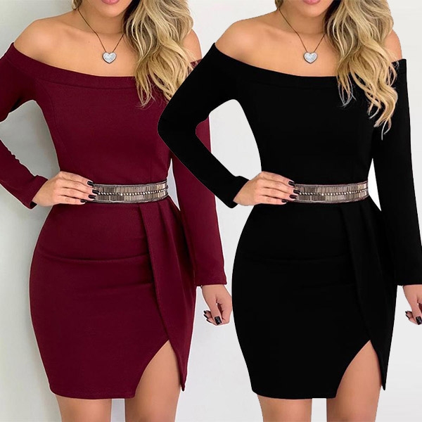 finished with long sleeve,boat neck,slit hem and a tight silhouette,this dress not only can highlight