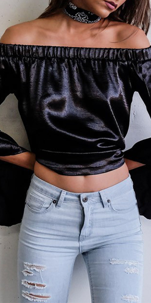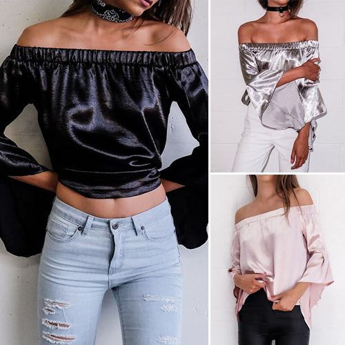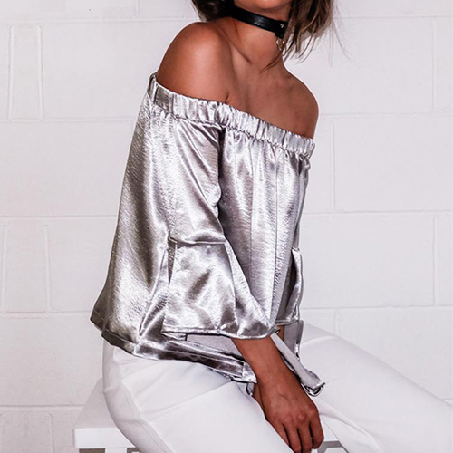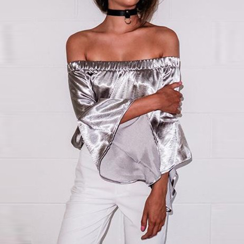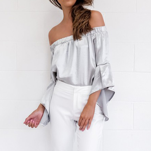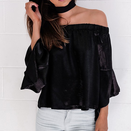 What a better way to achieve a sexy yet feminine look than with this tops? Boasting a solid color,designed with trumpet sleeves and boat neck design,