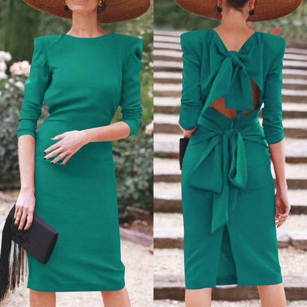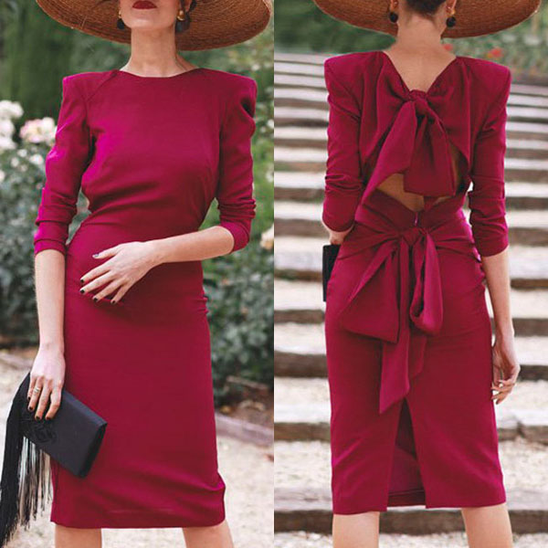 When invited to a night party,this dress can help you win more eyes. Solid color style,elegant yet charming.