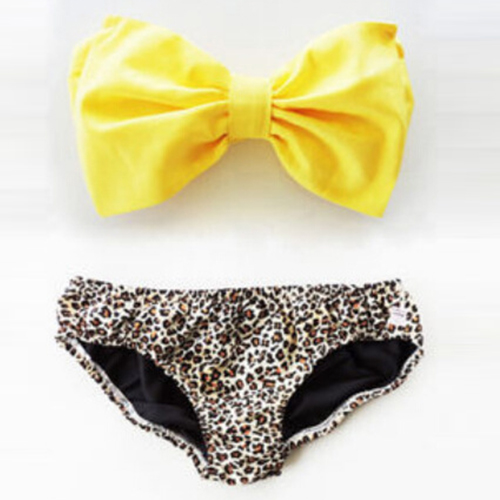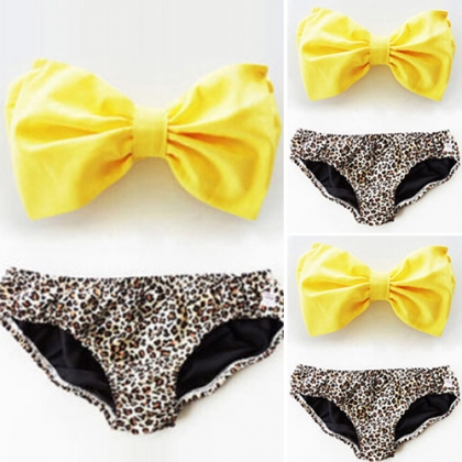 this bikini set. Including a bowknot bandeau bra and a leopard print briefs,this bikini set will give you a sexy