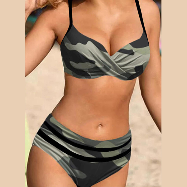 When the summer comes,it is time for you to head to the seaside to enjoy the sunny days. Aat this time,a sexy and eye-catching bikini set is a must-have item. That's why we suggest you this set. Features camouflage printed pattern,with a matching high waist briefs,this bikini set is bound to make you be the focus on the beach.