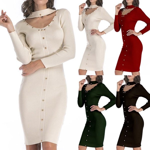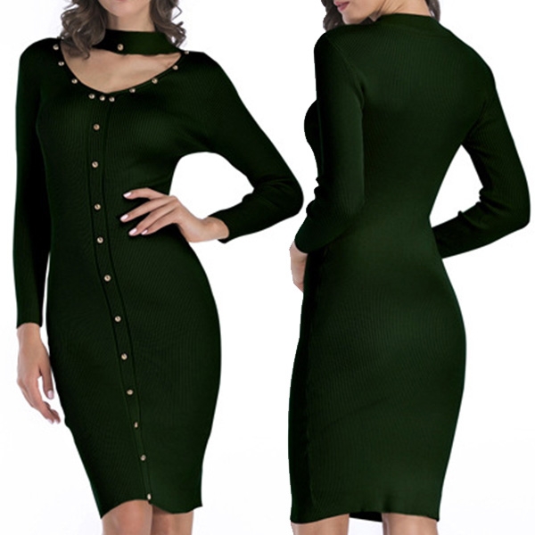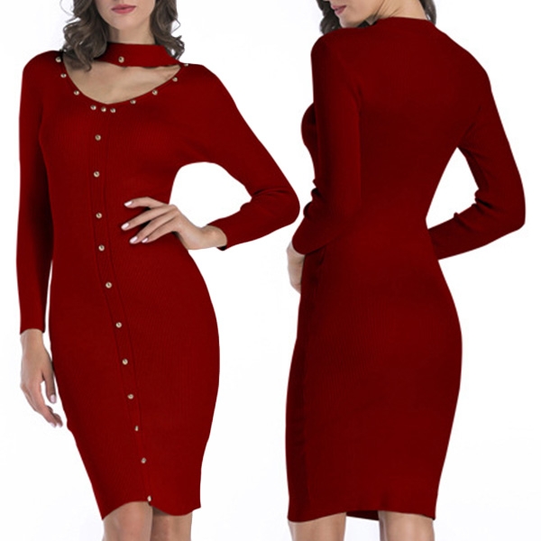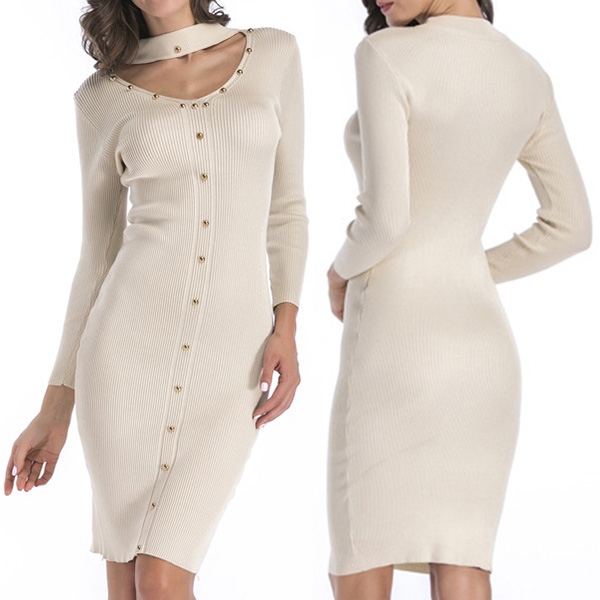 The most attractive design of this knit dress is the choker v-neck design,which not only exudes