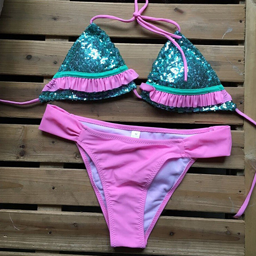 Ready for sunny seasons ? Don't miss this colorblock bikini, featuring the little ruffle around bra,low-rise bikini bottom