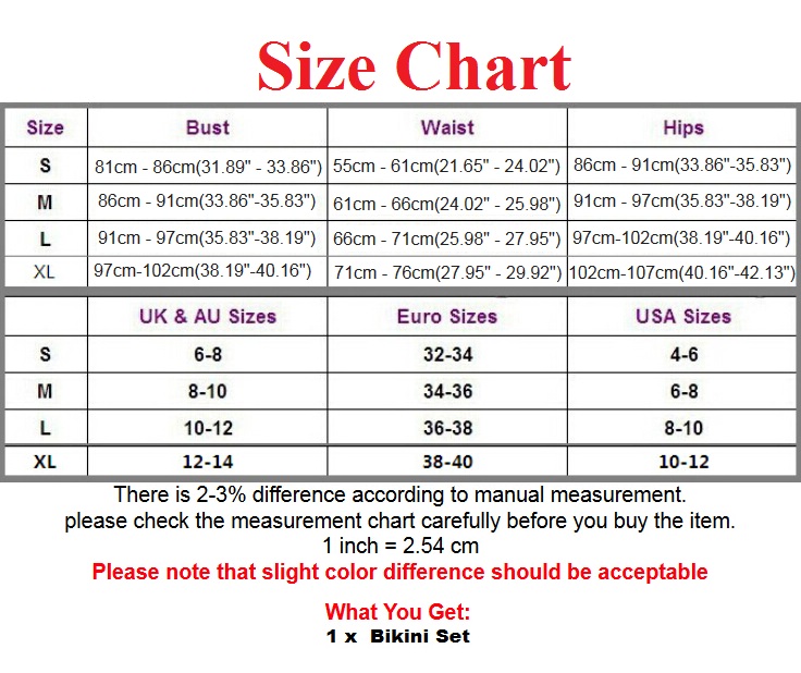 XL : Bust : 97cm - 102cm(38.19" - 40.16"); Waist : 71cm - 76cm(27.95" - 29.92");