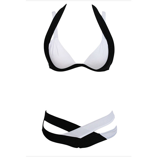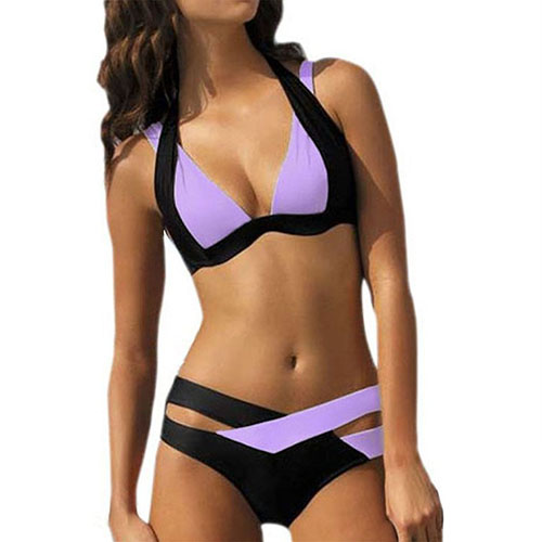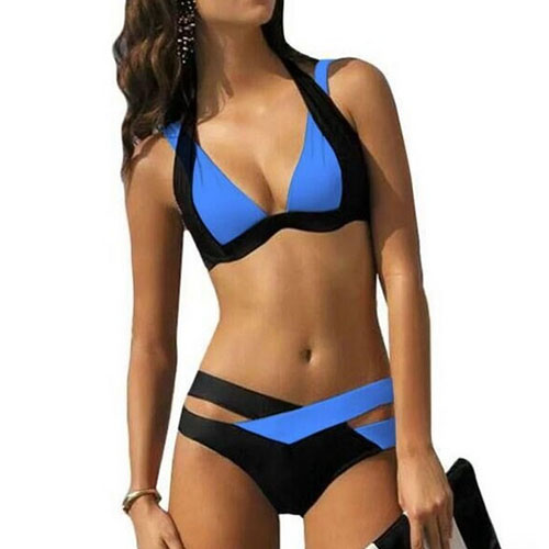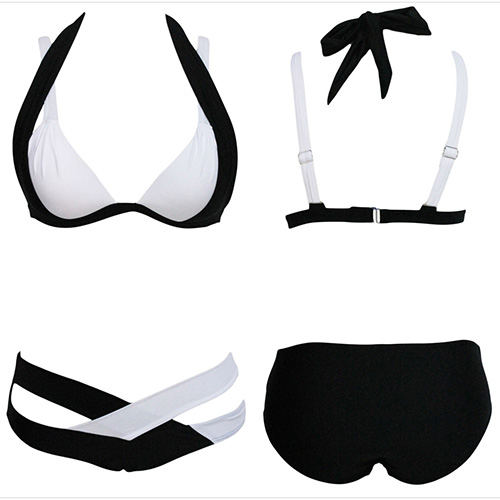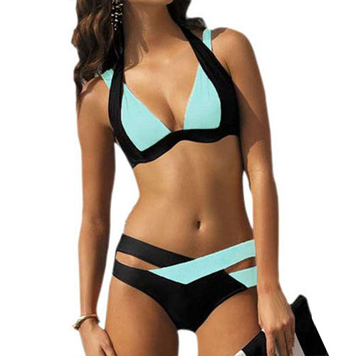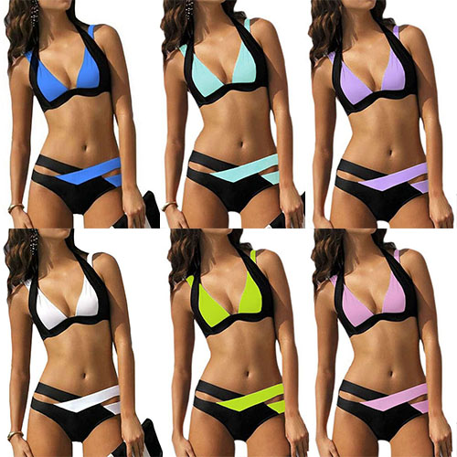 Make a splash on the beach with this sexy bikini set. Contrast color style,including a crossover