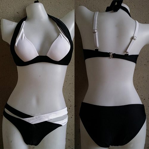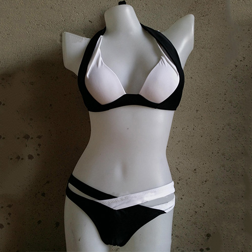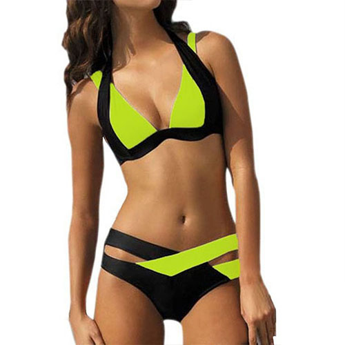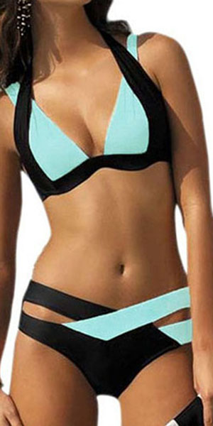 halter bra and a hollow out triangle briefs,this bikini set is a perfect way to make you stand outduring your seaside trip.