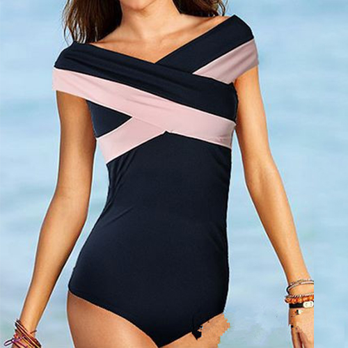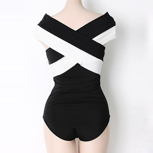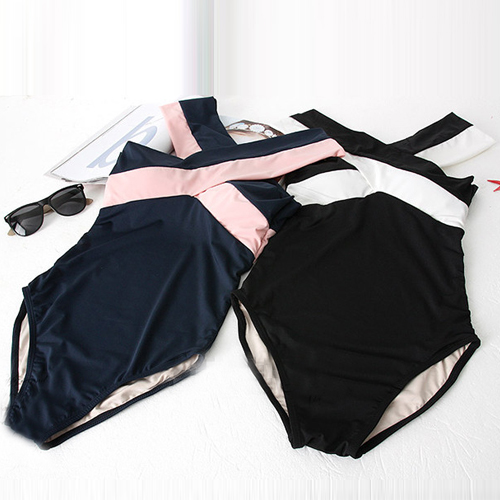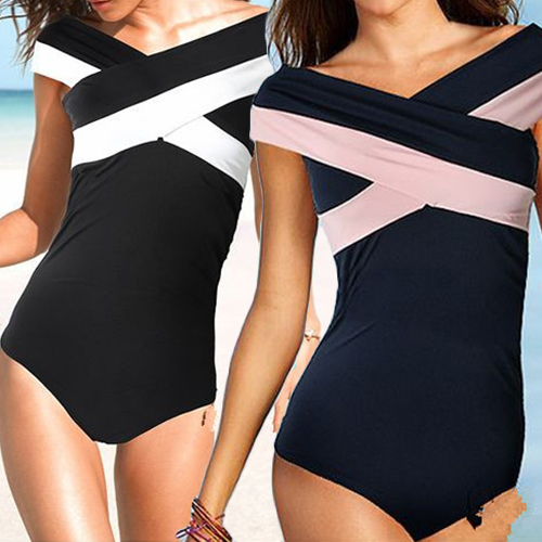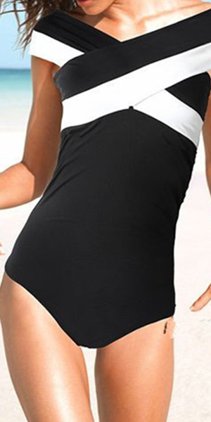 Contrast color style,its crossover design makes this one-piece bikini look so sexy and charming.