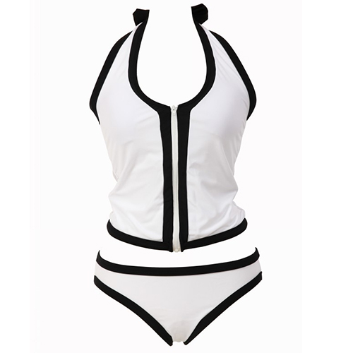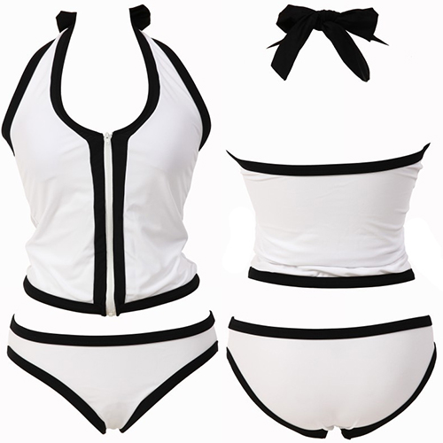 This conservative bikini set is perfect for those shy person. Contrast color style,including a halter tops