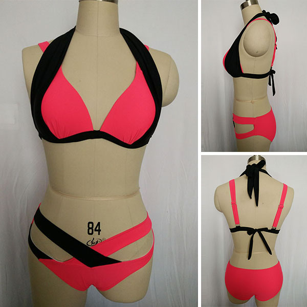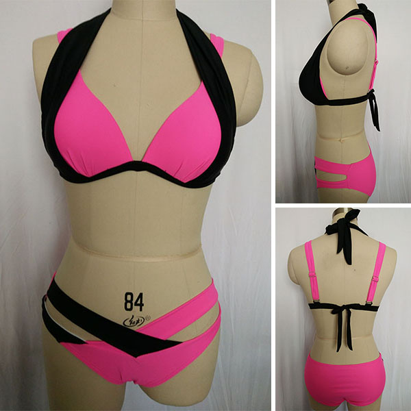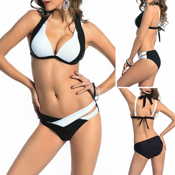 more eye-catching and appealing. Consists of a halter bra and a low-waist briefs,this bikini set can make your day memorable!