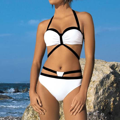 Make a lasting impression at the pool or on the beach in this sexy and charming bikini set. Contrast color style,