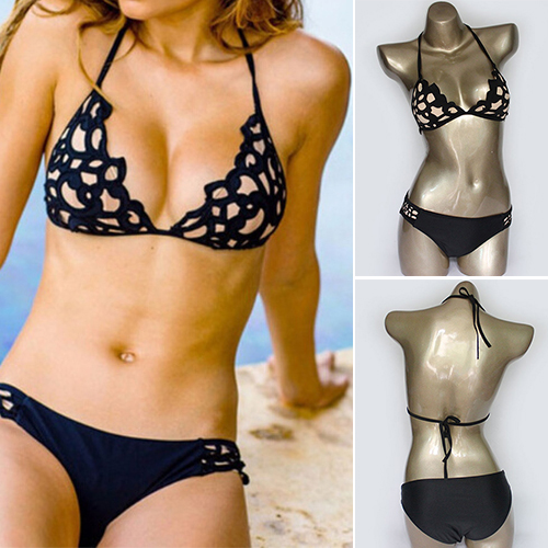 Contrast color with hollow out spliced details make this bikini set look so sexy and distinctive,while its cozy fabric