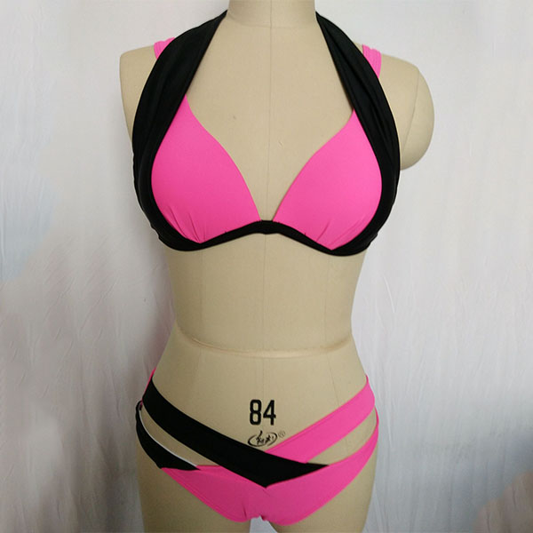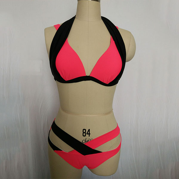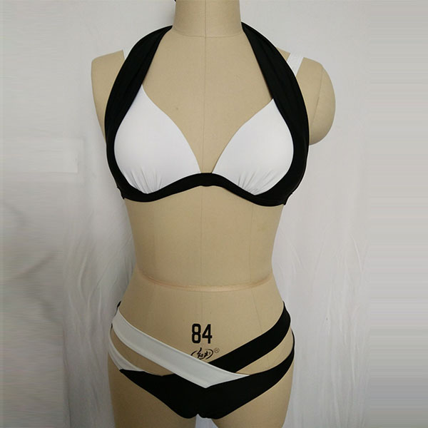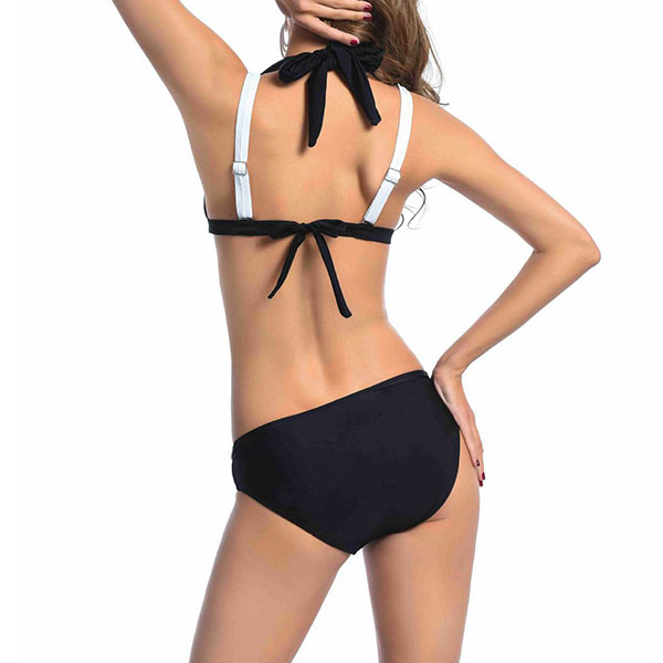 Make a stunning statement on the beach with this alluring bikini set. Contrast color style,consists of a halter bra and a