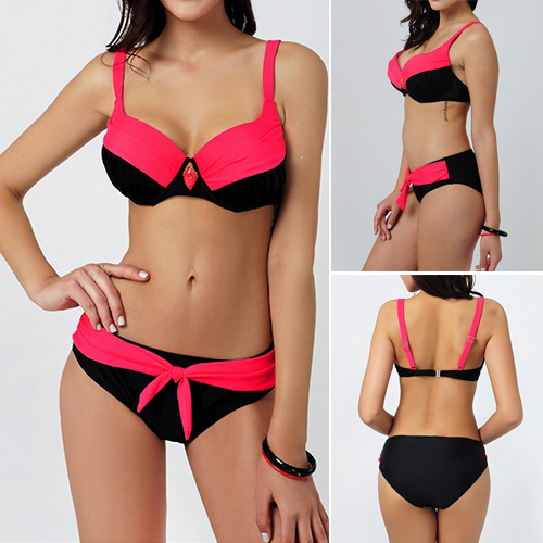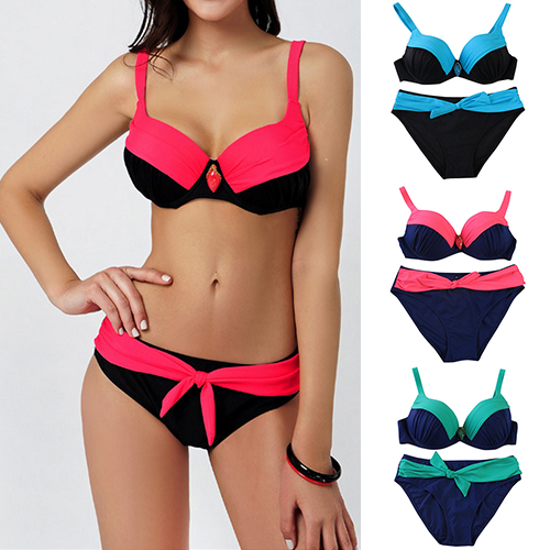 Look stylish and feel comfortable in this bikini set! Contrast color style,with adjustable shoulder strap,