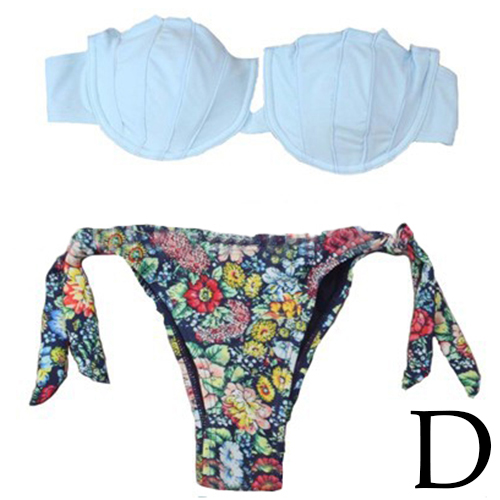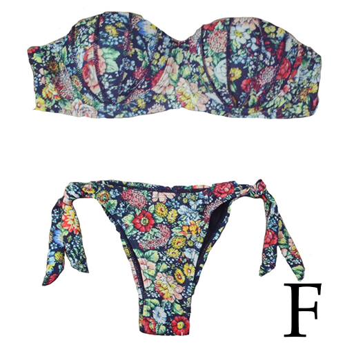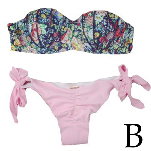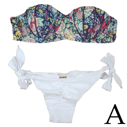 this set? Including a bandeau bra and a low-waist briefs,this bikini set can give you a charming beach look.