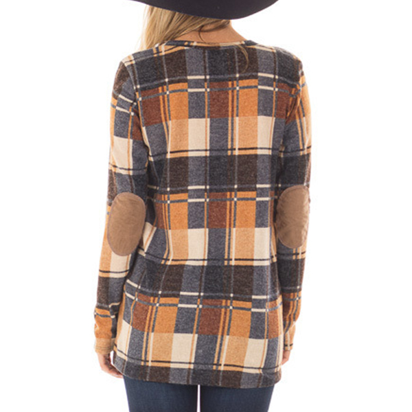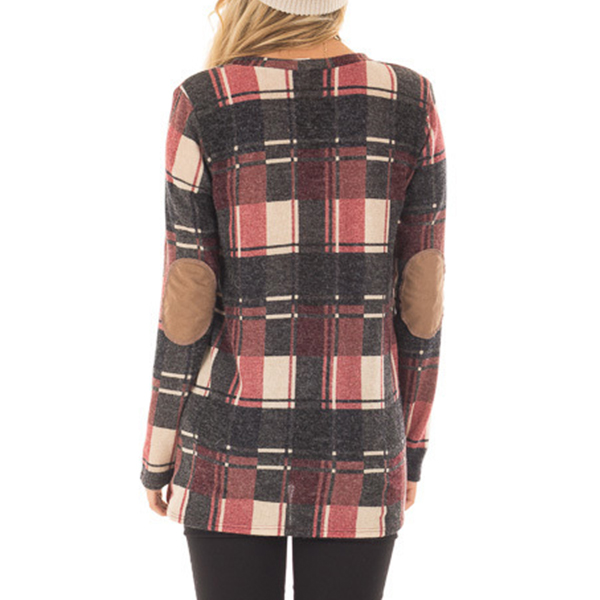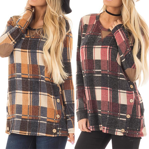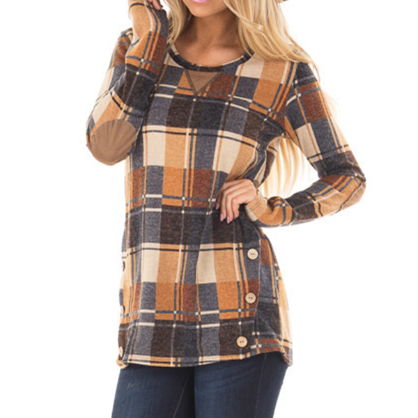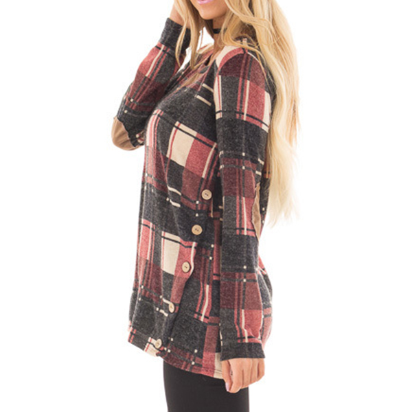 Round-neck style,with long sleeve and plaid printed pattern design,simple and sexy.Two side buttons design