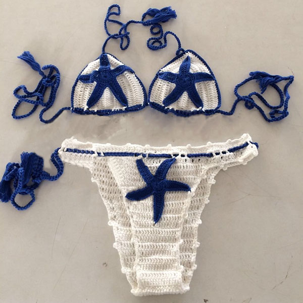 Wanna be the sexiest bikini girl? Then slip into this bikini set. Knit style,the contrast color starfish pattern
