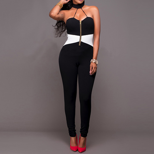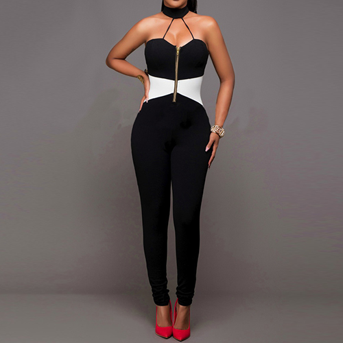 Your confidence and beauty would exude via this sexy jumpsuit. Classic black-white color spliced design