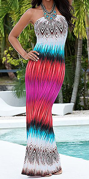 This maxi dress with unique contrast color and printed design, brings people a refreshing feeling.