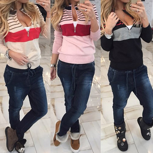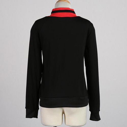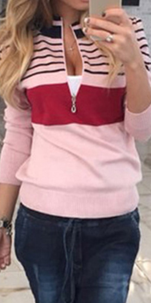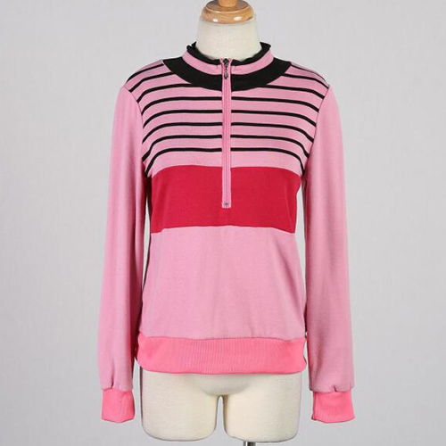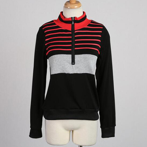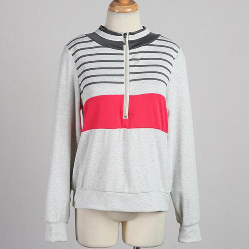 outfitted with long sleeve, contrast color and round neck, its front zipper can make it as a deep