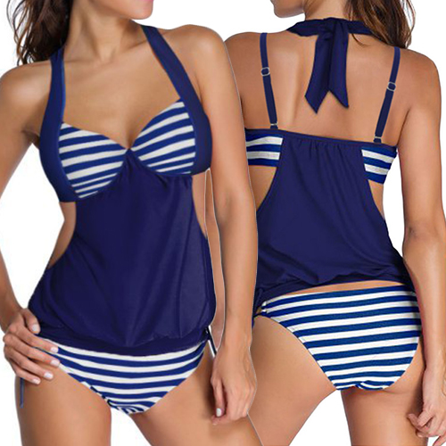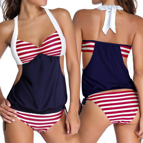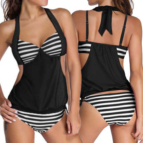 Escape this hot summer and jump into the pool or sea with this swimwear set. Classic stripes