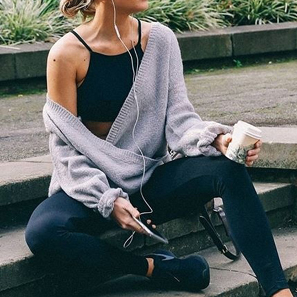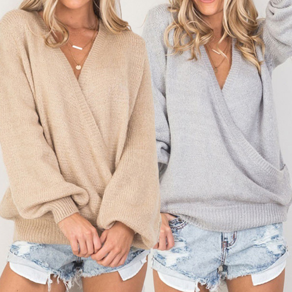 Sexy Corsover Deep V-neck Long Sleeve Solid Color Knit Sweater
