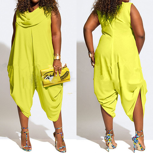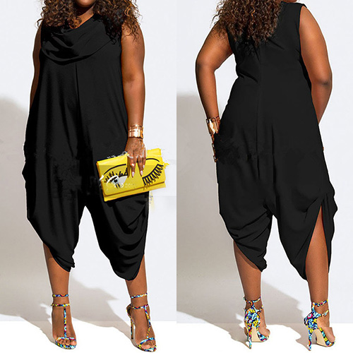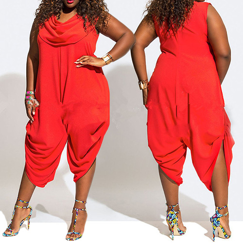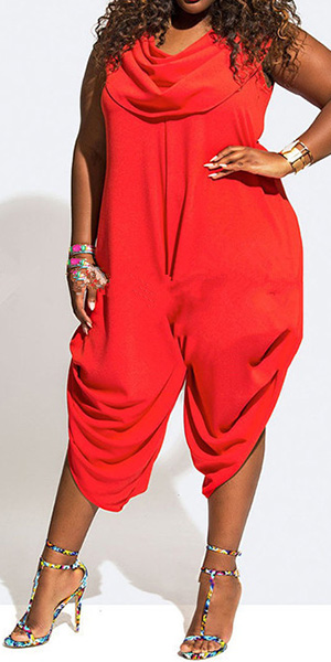 Super cool and chic. This solid color jumpsuit features cowl neck design, sleeveless structure and