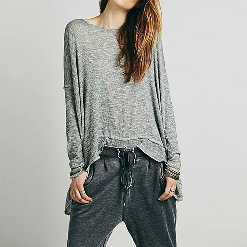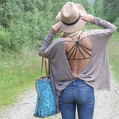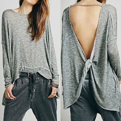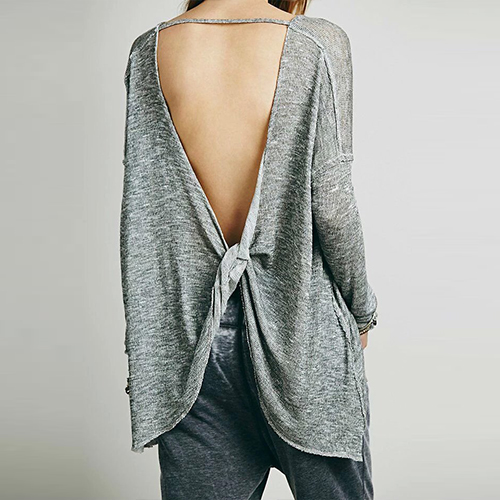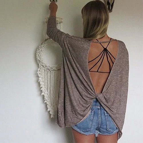 Finished with long sleeve,round neck,crossover backless and a loose silhouette,this t-shirt