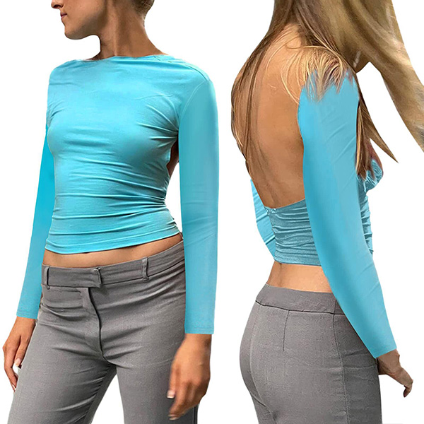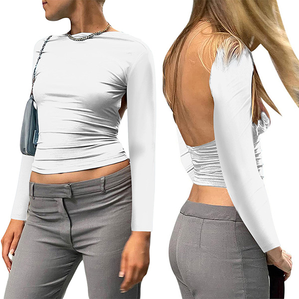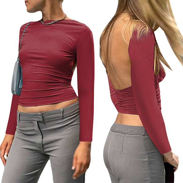 Sexy Crossover Backless V-neck Solid Color Slim Fit T-shirt