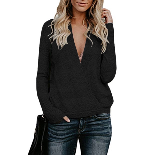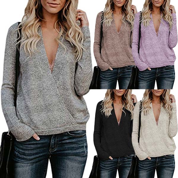 a solid color,the crossover deep v-neck design makes it look so sexy,while the soft and cozy knitted