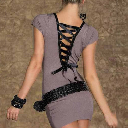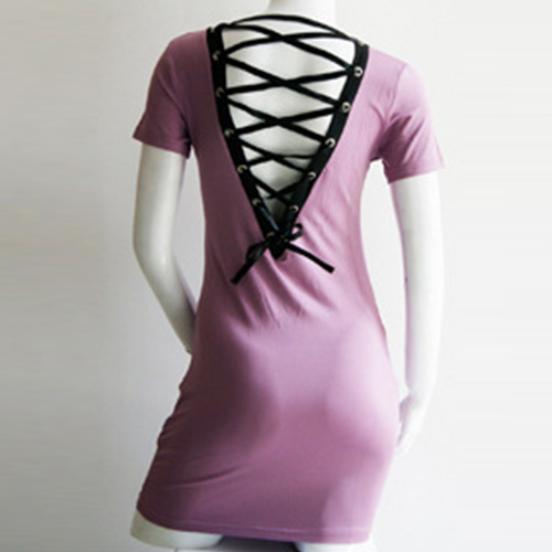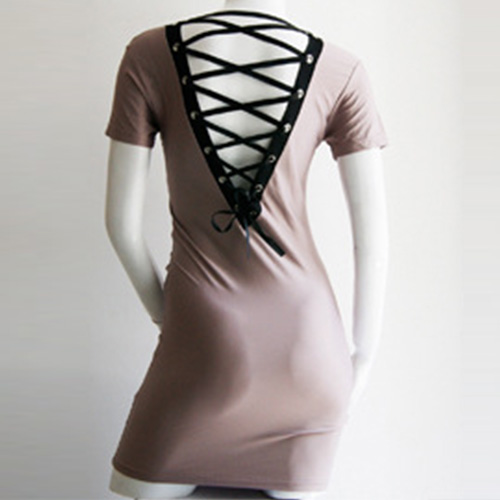 Sexy Crossover Lace-up Backless V-neck Short Sleeve Tight Dress
