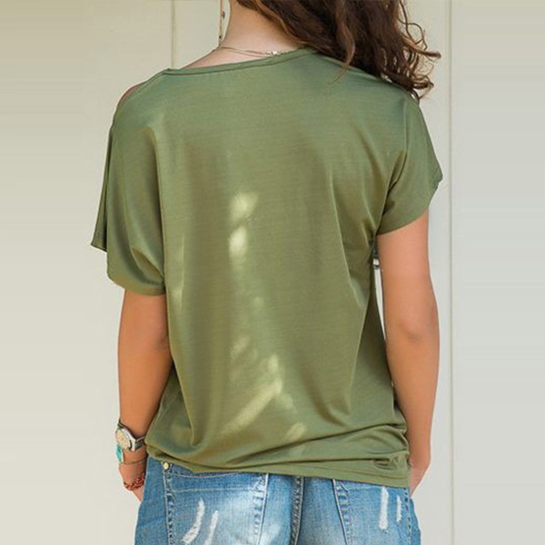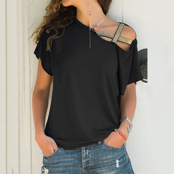 Have you ever seen such a chic and unique t-shirt? Solid color style,the crossover oblique shoulder
