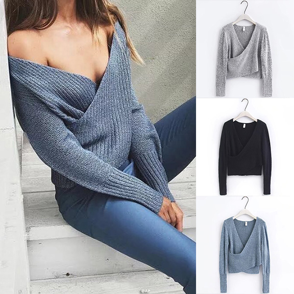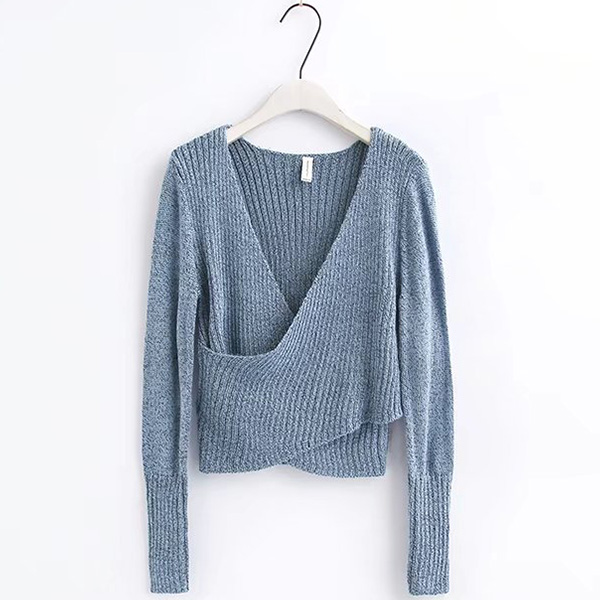 knitted fabric,this wonderful piece can ensure you a comfortable day,while the crossover v-neck design