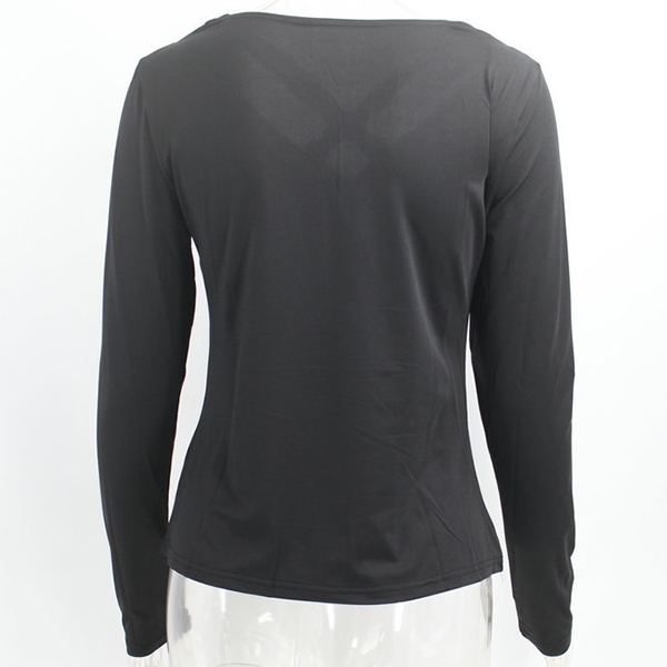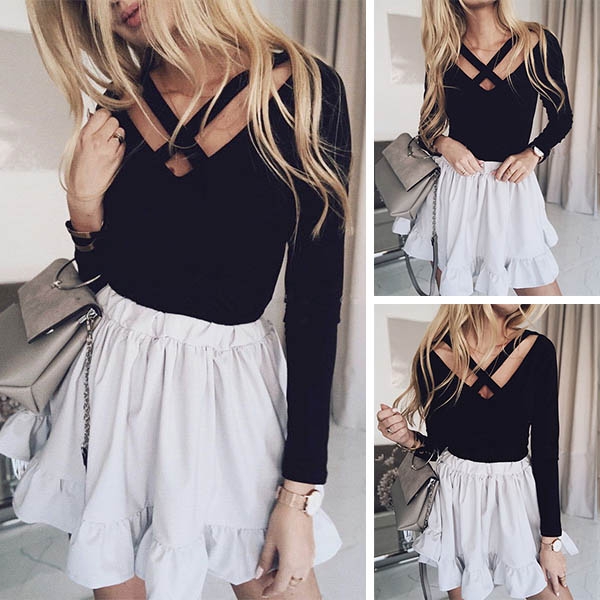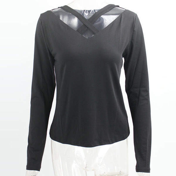 You can stay cozy yet sexy in this t-shirt! Boasts a classic yet flattering black tone,the crossover v-neck