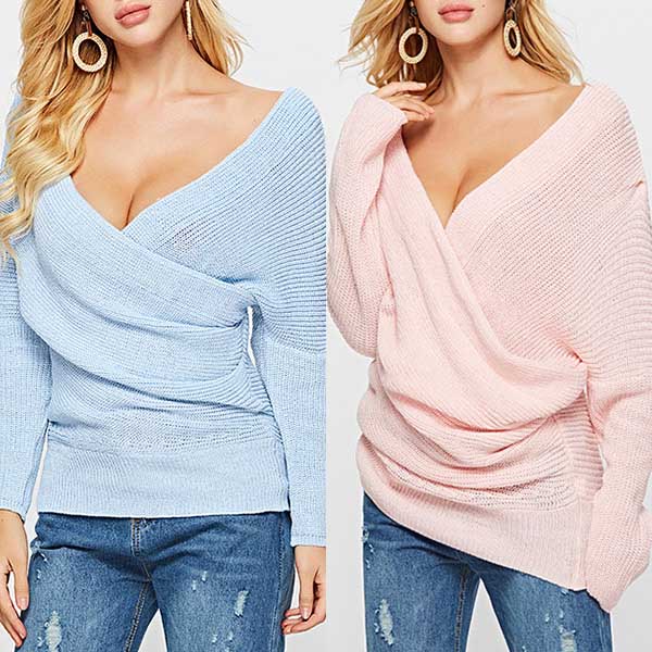 The sweater comes with a solid color,the crossover v-neck design can lend you a dash of sexy