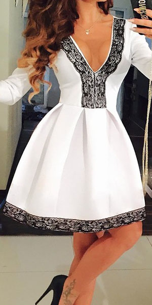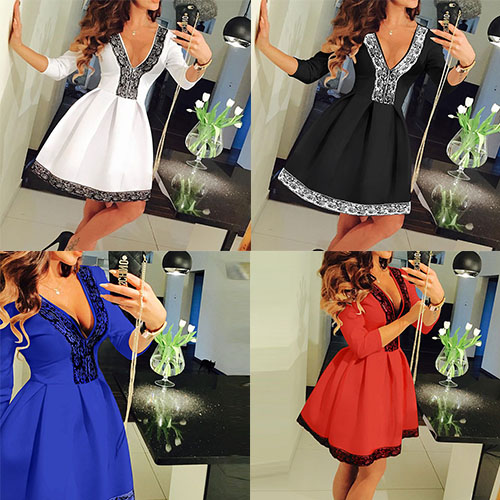 outfitted with 3/4 sleeve,a deep v-neckline and a high waist,this dress can make you look sexy and charming